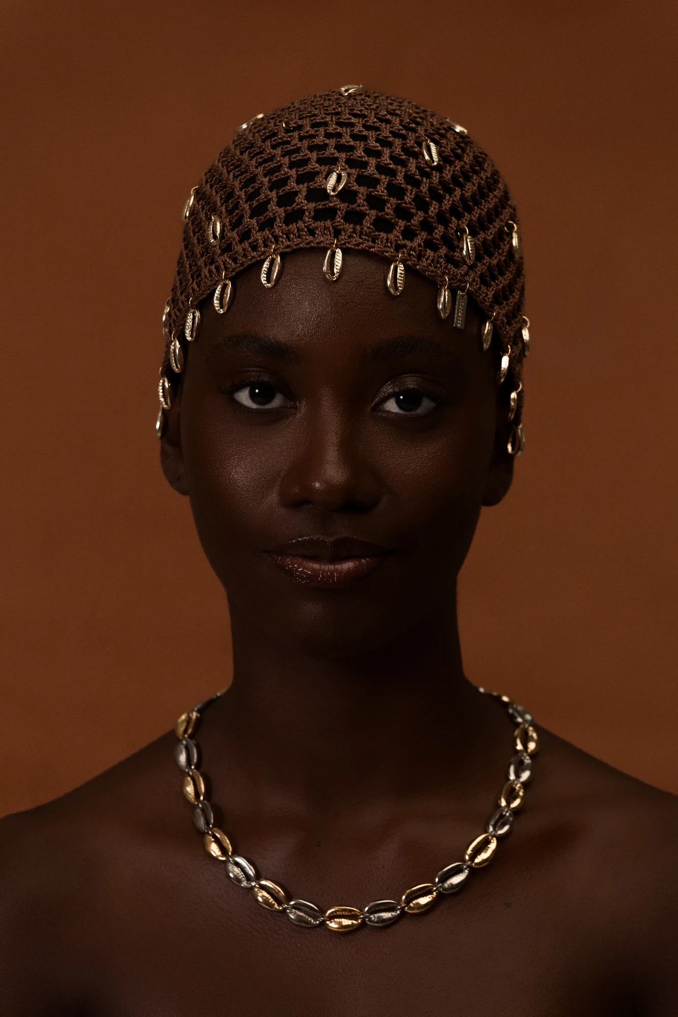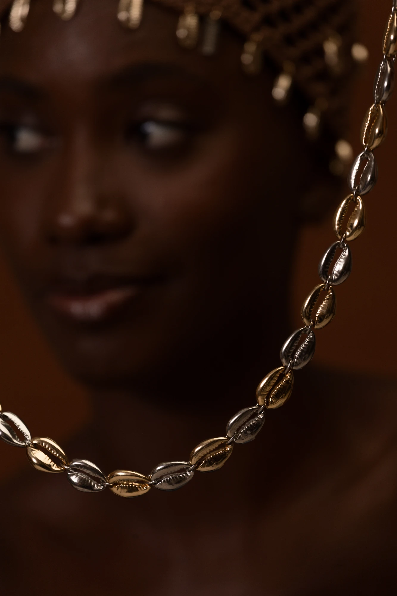 colar em búzios de metal